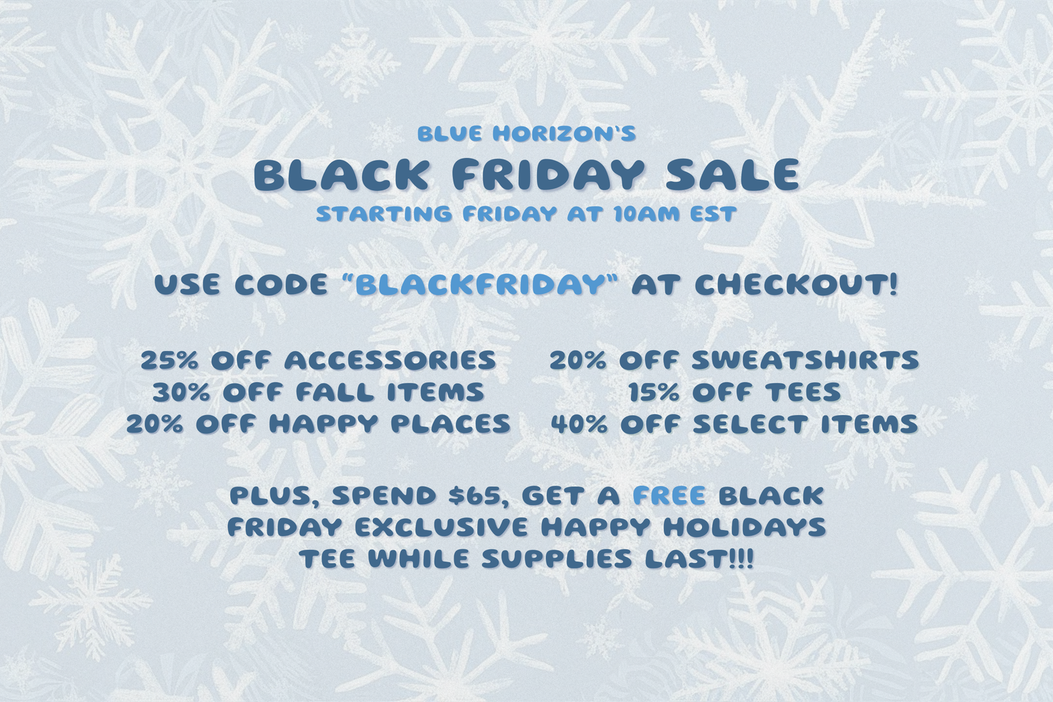 Our exclusive Black Friday tee features a vibrant festive screenprint on a 100% cotton Comfort Colors tee. Add to your cart for orders over $65 to receive this tee for free!
