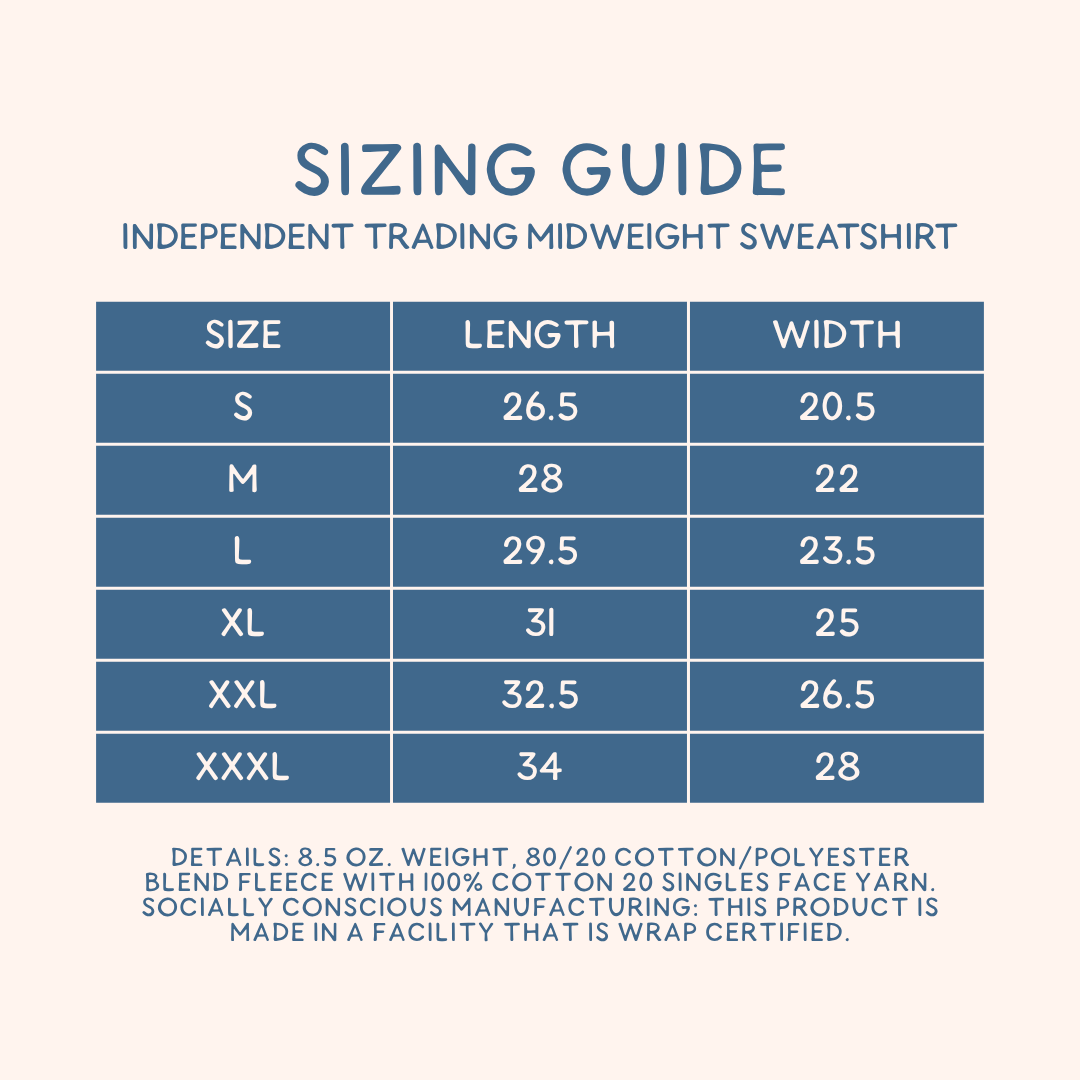 Brand: Independent Trading Co., unisex fit (see sizing chart in photos)
