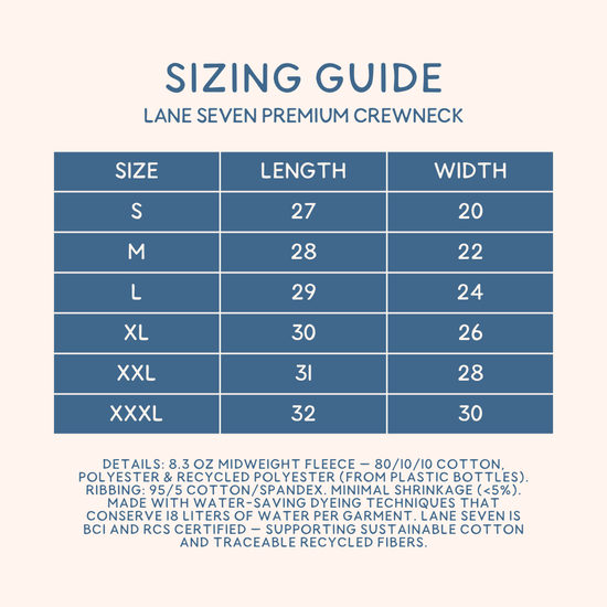 Brand: Lane Seven, unisex fit (see sizing chart in photos)