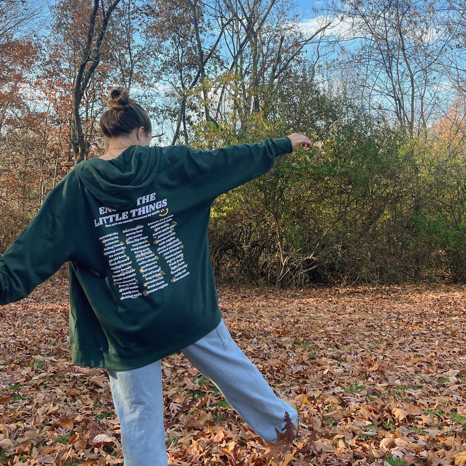 Introducing the Little Things zip-up hoodie! This design is the perfect reminder to give yourself grace, take a deep breath and cherish life's simple pleasures. The zip-ups are are screen printed and full of happy doodles of life’s little things.