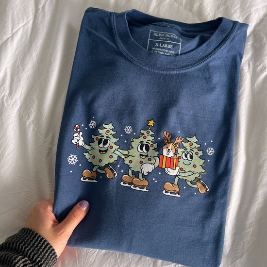 Probably my favorite item to ever exist :') Meet Harold, Wallace and Leonard, the ice-skating Christmas trees. I love them and their lil pup. These long-sleeves are so comfortable!